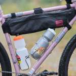 ▲走行中に必要なモノを持つには、トップチューブも有効活用してバッグを取り付け