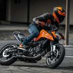 今年でデビュー30周年となったデュークシリーズの250はエンジンやシャシー、スタイリングなどを一新。新設計の2ピースフレームにトリプルクランプとオフセット見直しにより、ハンドリング特性が向上して、さらにコントローラブルに。