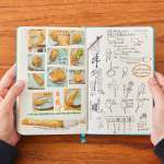 メモ帳やノートに描いたスケッチを切り取って、あとで手帳に貼るのもいいだろう。常に手帳を持ち歩く必要はないので、とにかく何かに記録を残しておく。