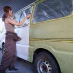 購入当初は白かった車体を気に入った塗料“グリーン・ソイ・ビーンズ”色に塗っていく。