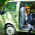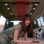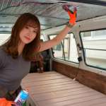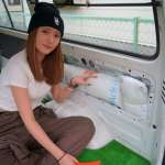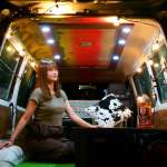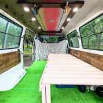 そしてこれが現在のえだまめ号の車内。人工芝を敷き、木製のベッドを取り付けている。
