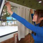 車中泊や休息中にプライバシーを守れるように、カーテンも取り付け。