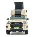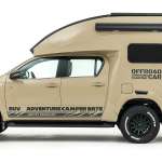 「BR75」はいわゆる“キャブコン”タイプ。キャブコンバージョンの略で、キャブ(運転席)の後ろに居住スペースの「シェル」を乗せたクルマのこと。現行型ハイラックスをベースに曲線デザインのキャンピングシェルを融合し、SUV好きも満足できるキャンピングカーを完成させた。