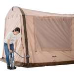 ▲設営は付属の専用手押しポンプで空気を入れるだけ。空気がフレームがわりになり約70秒で自立