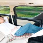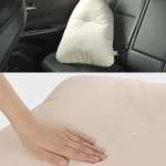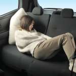 ▲「すみっこクッション」は、ベンチタイプのリアシートのすみっこに置いて、枕のように使用してくつろぐことを想定したもの。車内用に適したサイズと形に設計されている