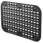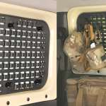 ジムニーのリアサイドウインドウ専用に設計された、モールシステム対応の壁面収納パネル。高温でも湾曲することがない素材で作られているので猛暑の夏でも使える。