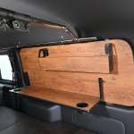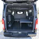 ▲ハイエースのリアサイドウインドウに取り付ける、パネルやそこに付けられるテーブルもある