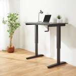 座りっぱなしを回避するのに最適な昇降デスク。天板は傷にも強く水拭きしても問題ないPVCシートを使用する。ハンドルを回す手動タイプで、約40回転の操作で73~122cmまでの上げ下げが可能。