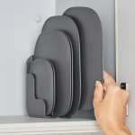 「食器がかさばり収納に困る」という声から生まれた、収納に特化した専用スタンド付きプレートセット。4.5cm間にサイズの違う6枚のプレートが収納できる。プレートは電子レンジや食洗器で使用可能なのもうれしい。