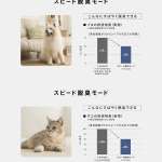 ペットの排泄物の嫌な匂いのもととなる成分を次亜塩素酸で強力脱臭・除菌する。「シームレス風量切り替え運転」にすれば、犬や猫が驚く、突然の大きな音の発生も防げ る。