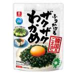 食欲をそそるごま油と、ザクザクとした弾ける食感が楽しめる、クセになるおいしさのわかめふりかけ。わかめの栄養素である、食物繊維や鉄分、カルシウムもたっぷり配合。豆腐やサラダにかけてもマッチし、レシピのバリエーションも豊富。
