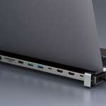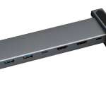 2月に発売されたPC用ドッキングステーション。USB Type-Cケーブル1本でPCに接続でき、計10ポートを拡張可能。PCの奥側を持ち上げるスタンドとしても活用でき、視線位置の調整や、タイピングの負荷軽減にも役立つ。