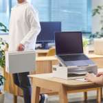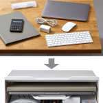 ノートPCや、周辺機器、書類などを収納できるボックスが、そのままノートPCスタンドになるというアイテム。取手も備わっていて、収納したワークツールをまとめて携行できる。横向きで下段が引き出しになる構造で使い勝手も◎。