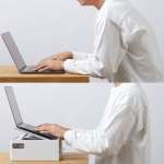 ▲PCスタンドがあれば、視線の高さを調整しつつ、姿勢を正しやすい。「ノッテオン」では、スタンドとしての高さを4段階で調整可能だ