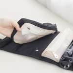 畳むだけで自然にくっつくので手間いらず。優れた速乾性を備えているので、折り畳み傘やペットボトルなど、持ち運び時にバッグ内を濡らす可能性のあるモノに使うと便利です(佐藤さん)
