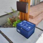 2Lサイズのペットボトルが6本すっぽり入る宅配ボックス。折りたたみでき、収納時の厚さは約3.5㎝。重さも約1.3㎏と、使い勝手も良好。2mの防犯ワイヤーとダイヤル錠も付属。サイズはW40×D30×H45cm。容量54L