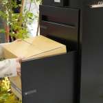 「スクイン」同様ポスト一体型で、ドッシリとした安定感とモダンながらもノスタルジックな一面も持ち合わせる宅配ボックス。ダイヤル番号の崩し忘れによる盗難や暗証番号の漏洩を防止するゼロリターンキーを採用。サイズはW47×D36×H89cm