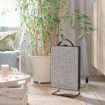 本体の奥行きが11cmとスリムな空気清浄機。プレフィルターと粒子除去用フィルター、ガスクリーニング用フィルターを備え、埃や花粉から臭いまで効率よく除去。ファン速度は3段階で調節可能。取手が付いていて持ち運びも簡単だ。