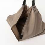 風呂敷や手ぬぐいを縫い合わせてカバン代わりにした、日本古来の“あずま袋”から着想を得てデザイン。日常使いしやすいナイロンボディにレザーハンドルをあしらい、SLOWらしさも表現。斜め掛けにも対応。W63×H48.6×D10.7cm