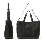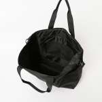 都会的な使用シーンを意識し、ミニマルなデザインに仕上げたトートバッグ。ポリエステルを主素材に、底部にターポリンを貼って補強。キャリーケースとのセットアップも可能で、日常使いから旅行まで活躍する。W57.2×H36.2×D17.5㎝