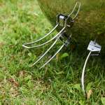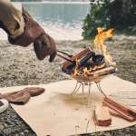 折りたたまれた脚を立てるだけの“3秒設営”は誰もが使いやすく、また円盤型の受け皿は通気性に優れ燃えやすい。耐荷重は約25kg(ソロ)〜約30kg(マックス)とシンプルな見た目以上にタフな設計。別売りのスタンドを使用すればダッチオーブンも設置可能だ。
