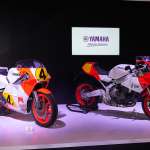 ▲国内初公開となったモビリティショーの会場では1980年代のGPレーサー「YZR500」と並んで展示された