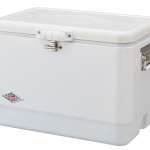 コールマンのクーラーボックス発売70周年を記念した限定モデル。アメリカの象徴であるホワイトハウスから着想を得たデザインや、ダイヤモンド柄のロゴが一際目を惹く。51Lと大容量で保冷力は約4日間。水抜きに便利なドレイン付き。
