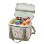 厚さ10mmの断熱材を使用しており夏場でも長時間保冷力をキープ。内側の生地には抗菌加工が施されており、子どものいる家庭でも安心して使用可能。ロゴスの定番ギアをモチーフにした小さな虫の遊び心あふれる柄がユニークだ。