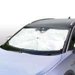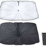 折りたたみ傘のようにワンタッチで広げて、フロントウィンドウに設置できるのがSEIWAの「ワンタッチサンシェードM」(実勢価格:2500円前後)。
