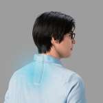 首の裏に取り付けるウェアラブルサーモデバイス。冷却/温熱面が首筋にフィットし、体を直に冷やしたり、温めたりできる。