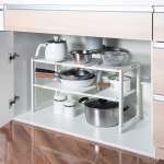 シンク下の空間を無駄なく使うことができます。棚板の耐荷重は1段5kgで、重い鍋やフライパンも収納できます(sakuさん)