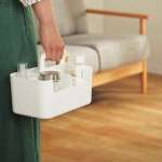 丸みのある持ち手が付いた収納ボックス。一部仕切りは取り外し可能で、さまざまな大きさの物を整理収納して持ち運べる。リビングでは各種リモコンケース、デスクでは文房具入れとして幅広いシーンで多用途に使える。