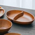 石川県加賀市の伝統技術と樹脂の加工技術を組み合わせて製作された山中塗の合成漆器。木目の風合いを持ち使い勝手も良好で、電子レンジや食洗機にも使用できる。