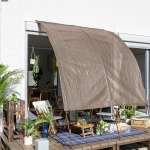 くつろぎスペースを圧迫しないアーチ型のサンシェード。遮光率86.7%、UVカット率86.3%、遮熱率41.2%の生地を使用。それでいて通気性が高く、風に煽られにくいのも特徴。設置も簡単。W200×D100×H290cm