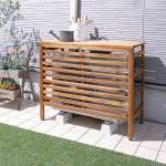 カインズオリジナルのアカシア材を使用したガーデンファニチャーシリーズ。無機質なエアコン室外機を目隠しできる木製カバー。耐荷重は10kgで、カバーの上に小型の鉢植えなどをディスプレイできる。W89×37×76cm