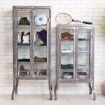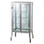 医療棚を思わせるスチール×ガラスのキャビネット。鈍い輝きを放つスチールの質感が、重厚な雰囲気を演出する。一方で全面がガラスで構成されていることもあり、圧迫感を感じさせないのも魅力。サイズはW69×D45×H132cm