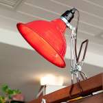 柱や棚などに挟んで使用するクリップタイプのランプ。インテリアのアクセントとしてだけでなく、ガレージの作業灯としても使える。電球はLED専用で、口金E2625W相当まで。カラーは写真のレッドに加え、イエロー、アイボリーなど全5色。