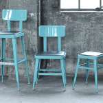 スチールならではの質感とシンプルなデザインが魅力のチェア。多くの飲食店で使われており、インテリアのアクセントに活用する人も少なくない。サイズはW43.5×D47×H81cm。カラーは写真のグレーグリーン含め全5色をラインナップ。
