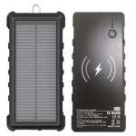 バッテリー容量は、大容量の21000mAh。ソーラーパネル5V-300mAを搭載。ケーブルがなくても充電できるワイヤレスポート付。防水・防塵・耐衝撃設計で、さまざまな場面に対応可。入力用マイクロUSBポート1口、出力用USB Aポート2口、入出力用TypeーCポート1口を搭載する。