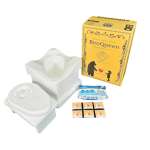 組立式トイレ、トイレットペーパー、ぽけっトイレを備えた簡易トイレ。世界最小クラスの携帯トイレ「ぽけっトイレ」は1個あたり排泄袋、防臭袋、凝固脱臭剤、除菌水が各×1のセットで、1個で尿3回または便+尿各1回に対応する。