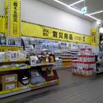 ニューポートひたちなか店の防災用品売り場。ジョイフル本田では各店に防災用品専門コーナーを設置し、商品を手に取りやすい環境を提供。また、各店舗で地域自治体や地元企業とイベントを開催し、防災意識を高めてもらう取り組みを行っている。