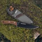 刀身にハイカーボンスチールブレードを採用したフルタングナイフ。刃強度に優れたフラットVグラインド構造により刃先は鋭く、“切る”“削ぐ”がしやすい。ナイフの全長は265mmでブレードの長さは145mm。刃厚は4.7mmと厚め。
