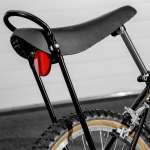 サドルはバナナシートに変更。座り位置を後ろにずらすことで、座り漕ぎがラクになる。