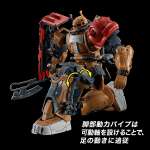▲メイン武器のザク・マシンガンは腰部背面に懸架することが可能。さらに脚部動力パイプは可動軸によって、足の動きに追従しポージングの自由度もアップ