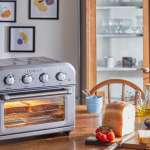 大型ファンを搭載したエアフライオーブントースター。強力な熱風調理でトーストからノンフライ調理やグリル調理、フライ惣菜の温め直しまで美味しく仕上がる。高性能なのにW375×D355×H310mmで設置しやすいのも魅力。