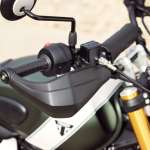往年のオフロードバイクを彷彿とさせるスクランブラースタイル。前輪を19インチ化するだけでなく、サスペンションストロークを伸ばすなど、悪路も走破できる車高を上げたスタイルとなっている。LEDヘッドライトに石よけガードを備えるなど、ヘビーデューティな仕上げが見事!