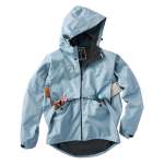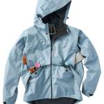 撥水性と防風性を備えたVネックのプルオーバー(ヤッケ)。針穴が容易に塞がる高密度のセルフリペア一素材リペアテックを使用。ストレッチ性があるため動きやすく、秋口のラインディングにはアウターとして活躍する。