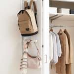 ドアやクローゼット扉に差し込むだけで簡単に取り付けられるハンガー。上下2段のため上は大人のリュック、下は子どものランドセルといった使い分けができる。翌日のコーデ、帰宅後のコート掛けにも便利。長さ約92.5cm。