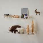 小物を飾るのに適したディスプレイ用のアクリル棚。パンフレ飾って収納できるアクリル棚飾って収納できるアクリル棚思い出の品やアートなどを思い出の品やアートなどをットや人形、アートなどを立て掛けられるコの字型。付属のピンを使って壁に簡単に取り付けることができ、透明なので圧迫感もない。幅約22~44cmの4種展開。