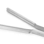 厚みのあるステンレス製トング。しっかり噛み合うWとVの形状になっており、食材を掴むだけでなく、袋に入った液体などを残さず絞り出せる。真空パックに入った粘度の高いソースも、挟んでスライドするだけで取り切れる。